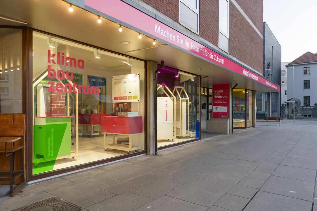Das Klima Bau Zentrum am Theodor-Heuss-Platz 1-3 ist der Ort für alle, die ihr Haus energieeffizient und nachhaltig modernisieren und ihr Leben klimafreundlicher gestalten wollen. Neben kostenlosen individuellen Orientierungsberatungen bieten wir auch eine fachgerechte Ausstellung sowie begleitende Veranstaltungsangebote.